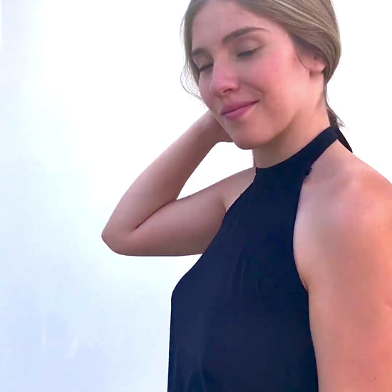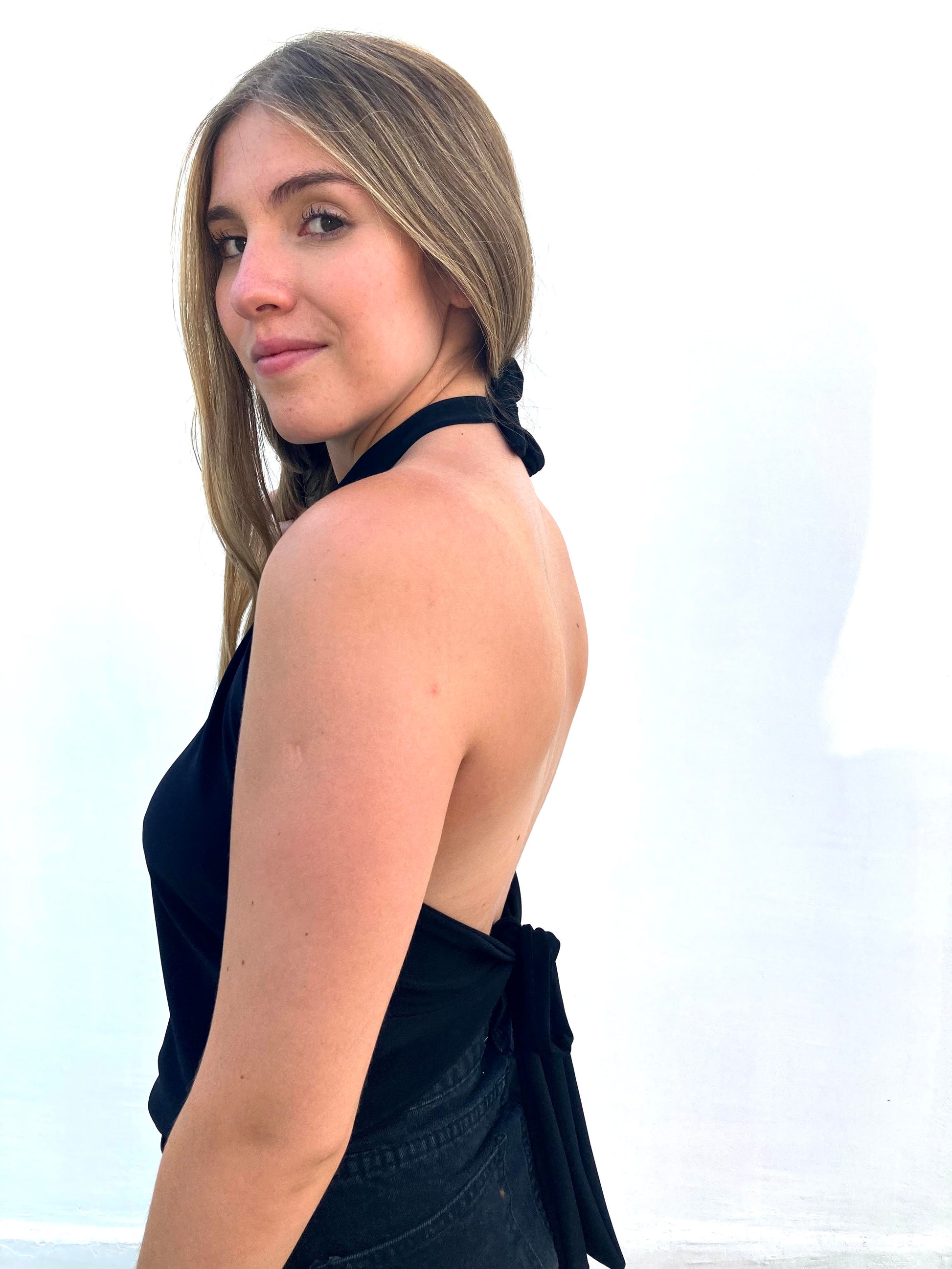 Top confeccionado en doble lycra fría por ambos lados con amarras en cuello y espalda, tela elásticada.