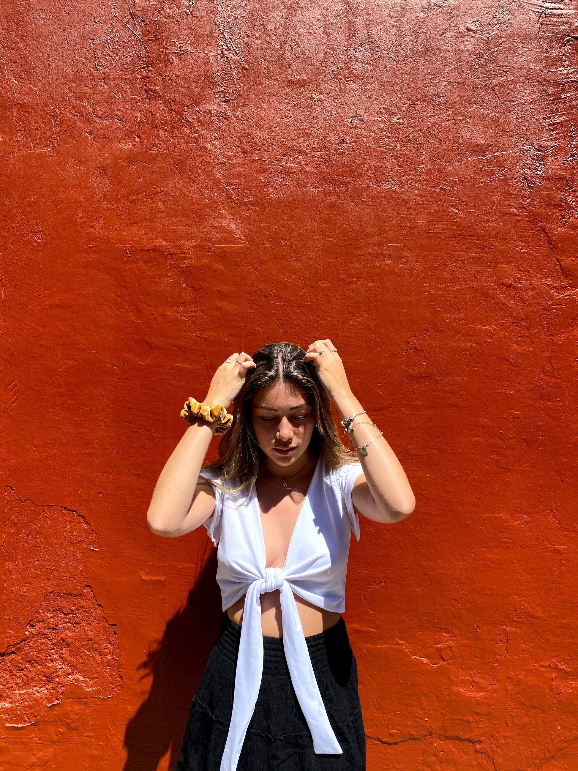 Top confeccionado en doble lycra fría por ambos lados con amarras, tela elásticada. ¡Puedes usarlo como más te guste!