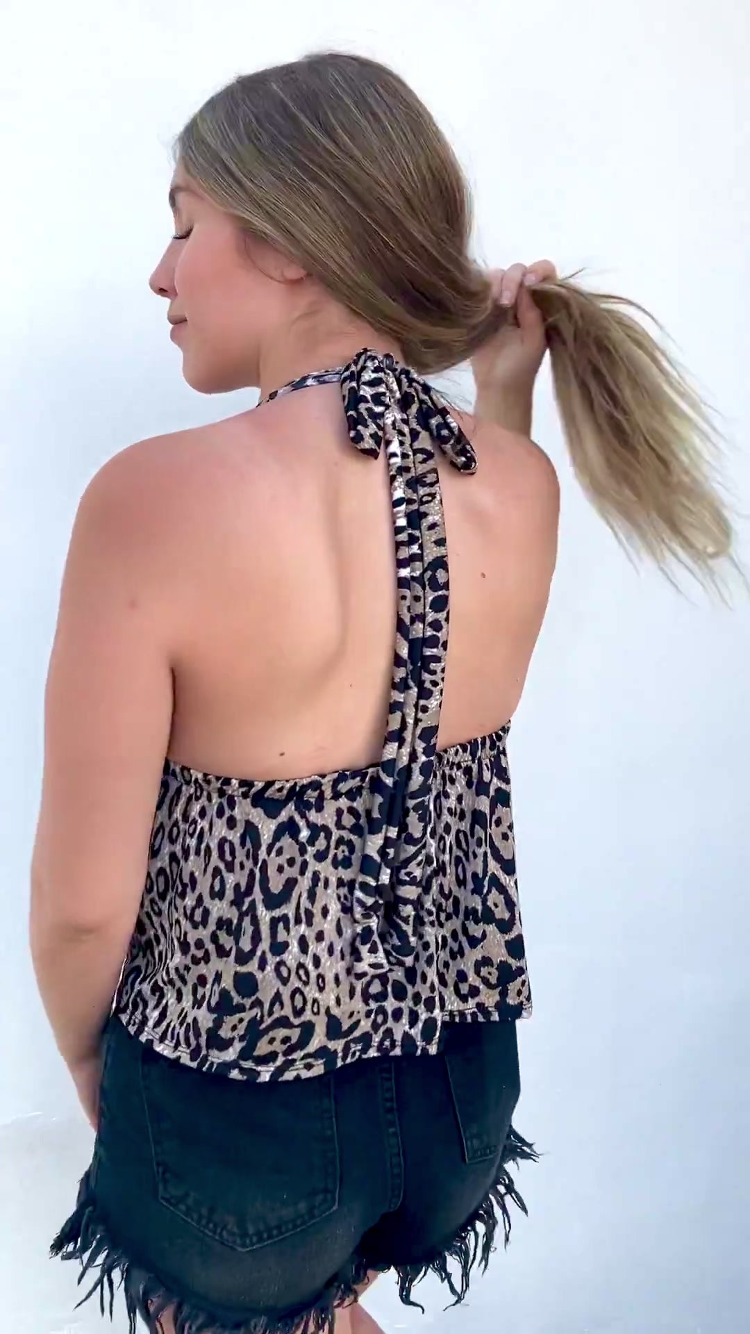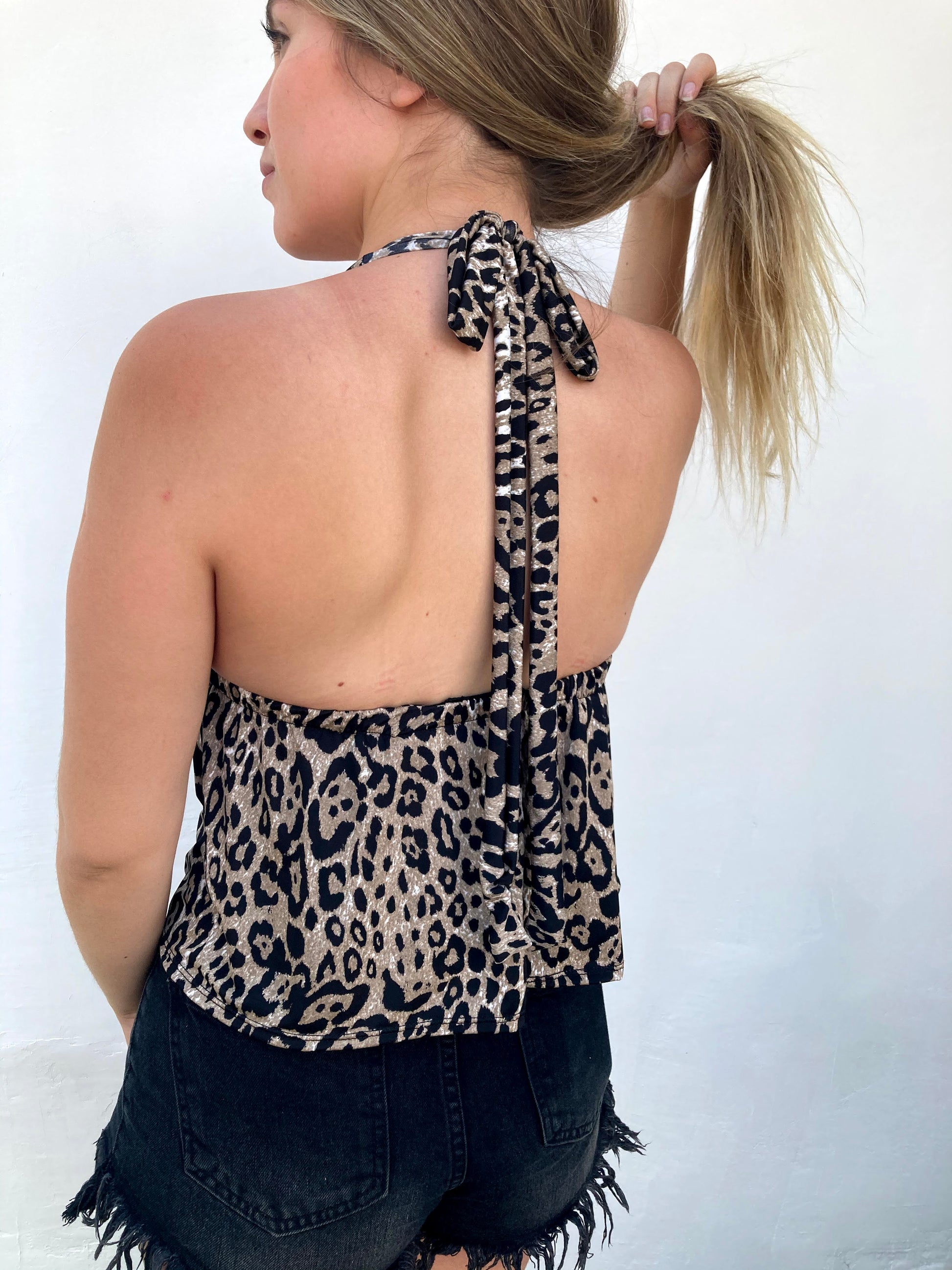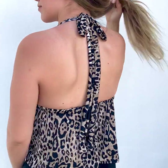 Top confeccionado en doble lycra fría por ambos lados con amarras en el cuello, cintura con elástico. ¡Puedes cruzar las amarras en la espalda o en el cuello!