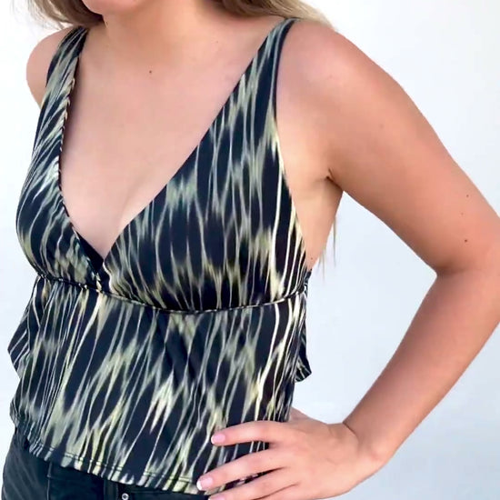 Top confeccionado en doble lycra fría por ambos lados con amarras en el cuello, cintura con elástico. ¡Puedes cruzar las amarras en la espalda o en el cuello!