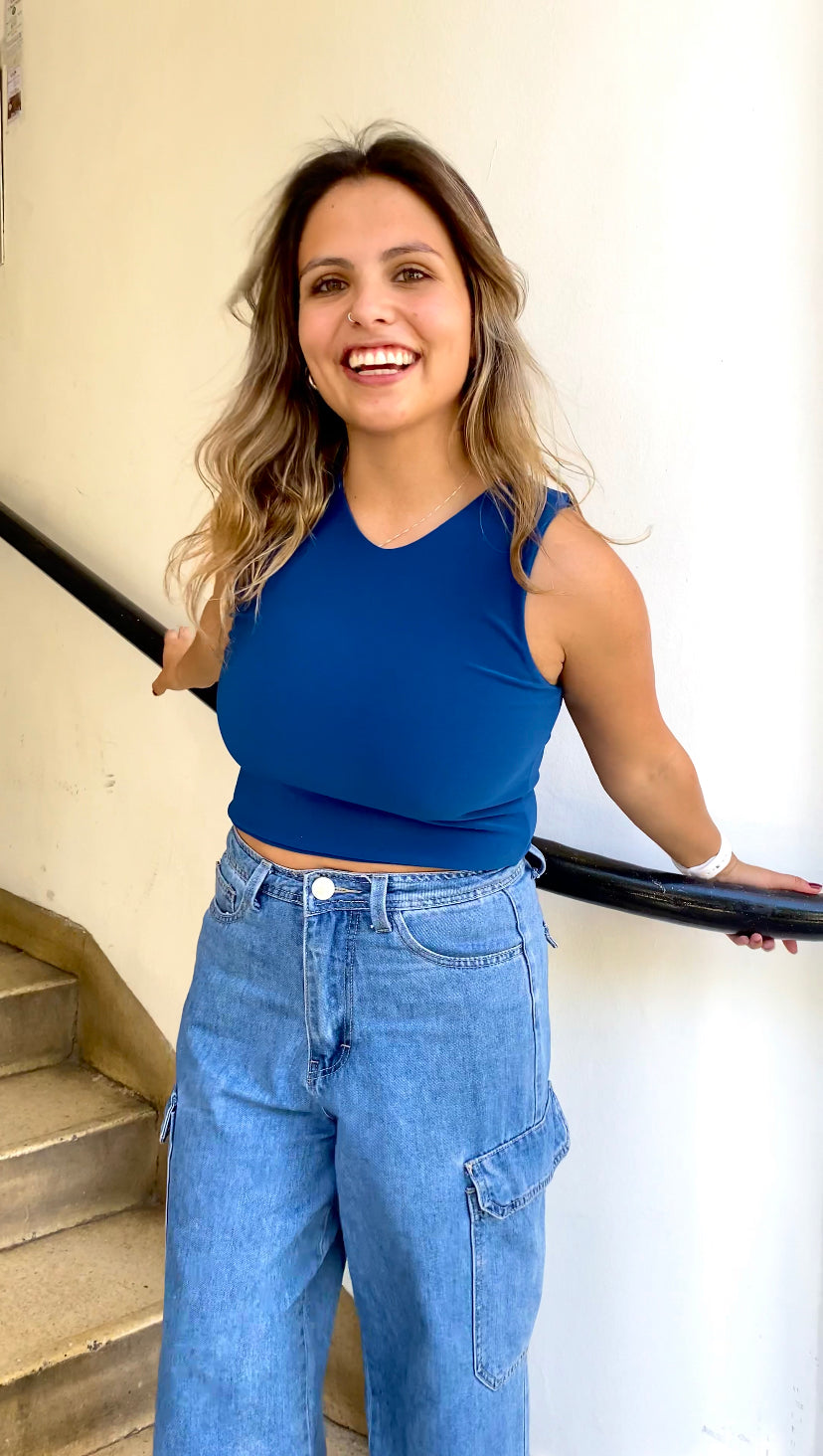 Top confeccionado en doble lycra fría por ambos lados, tela elásticada.